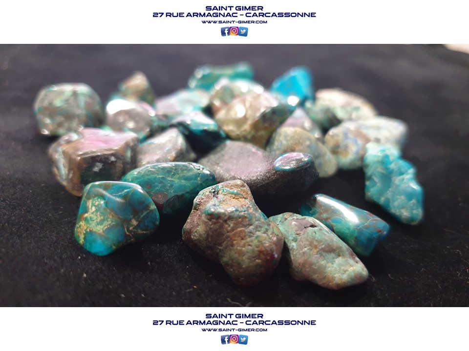 Imaginez une matrice faite de quartz fumé enrobant malachite, dyoptase, chrysocolle et shatuckitte et vous aurez une première idée des fabuleux pouvoirs de cette pierre "extra-ordinaire".